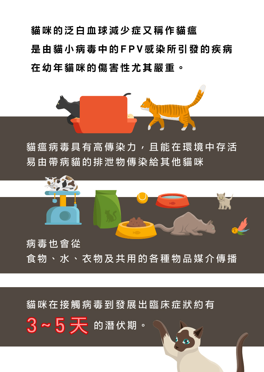 貓咪的泛白血球減少症又稱作貓瘟,是由貓小病毒中的FPV感染所引發的疾病,在幼年貓咪的傷害性尤其嚴重。