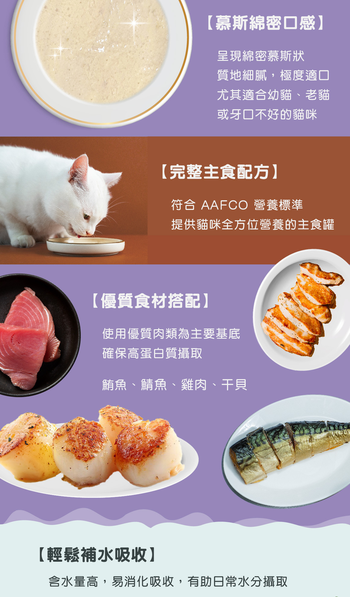 單一食材,冷凍乾燥保留完整營養 / 主食罐的營養,頂級干貝的美味